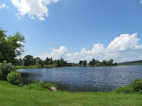 Tuesday, coffee in hand and the rest of the car heavy-laden with our tent, coolers, charcoal, bug spray, dishes, bedding, and other miscellany, we set off for our 5-hour journey. The trip was filled with beauty-appreciating silences, speaking in (horrible) French accents, craning our heads at historical markers, and making impulsive stops at overlooks--some of which didn't really overlook anything.